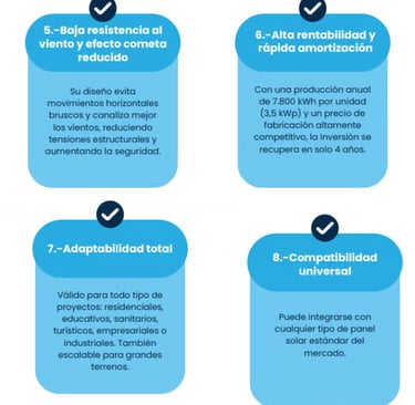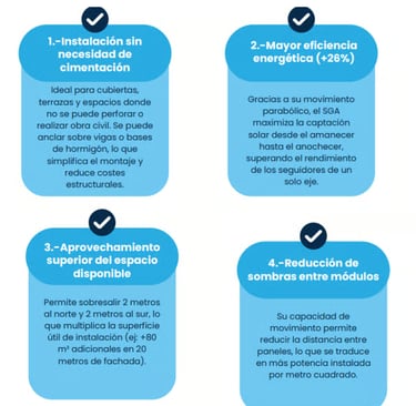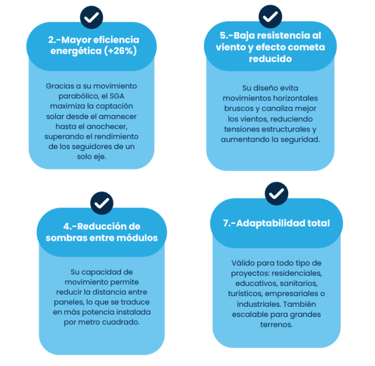 Máxima eficiencia energética: Gracias a su sistema de doble eje, este soporte supera en un 41% la producción energética comparado con las instalaciones fijas.